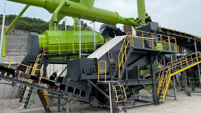 核心設備:鵝頸式輕型板喂機和中型板喂機,全密封輸送帶,負壓臥式風選機、階梯棒條篩、人工+智能化機器人聯合分揀平臺、雙軸撕裂機、除鐵器、除塵器等。